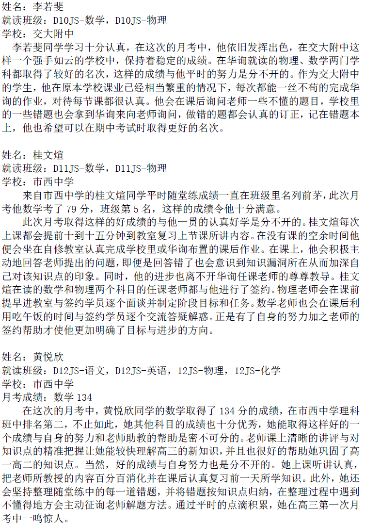 華詢教育階段成績展--第一次月考(東海篇)